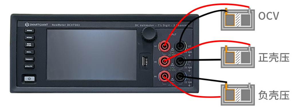采用1台DCV7503替代3台DMM/DCVM同时完成3路电压信号同步检测,隔离保证OCV、正壳压和负壳压测量相互独立,互不影响;同步既能大幅缩短测试时间,提高产线节拍,又能同一时间点采集的所有参数,更能真实反映电芯在该时刻的状态。